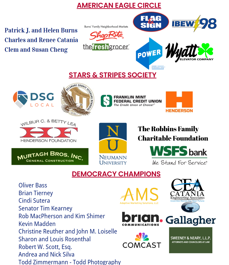 The 'We the People' party provided a sneak peek of the 2026 events and programs that will shape Delco's celebration. The night included remarks from Colonel Stuart B. Helgeson, President of Valley Forge Military College; Andrea Silva, Director of America250PADelco; Steve Byrne, Executive Director of Visit Delco; and Christine Reuther, Vice Chair Delaware County Council. Partygoers mingled with historical re-enactors as they sampled food grouped according to five themed stations: